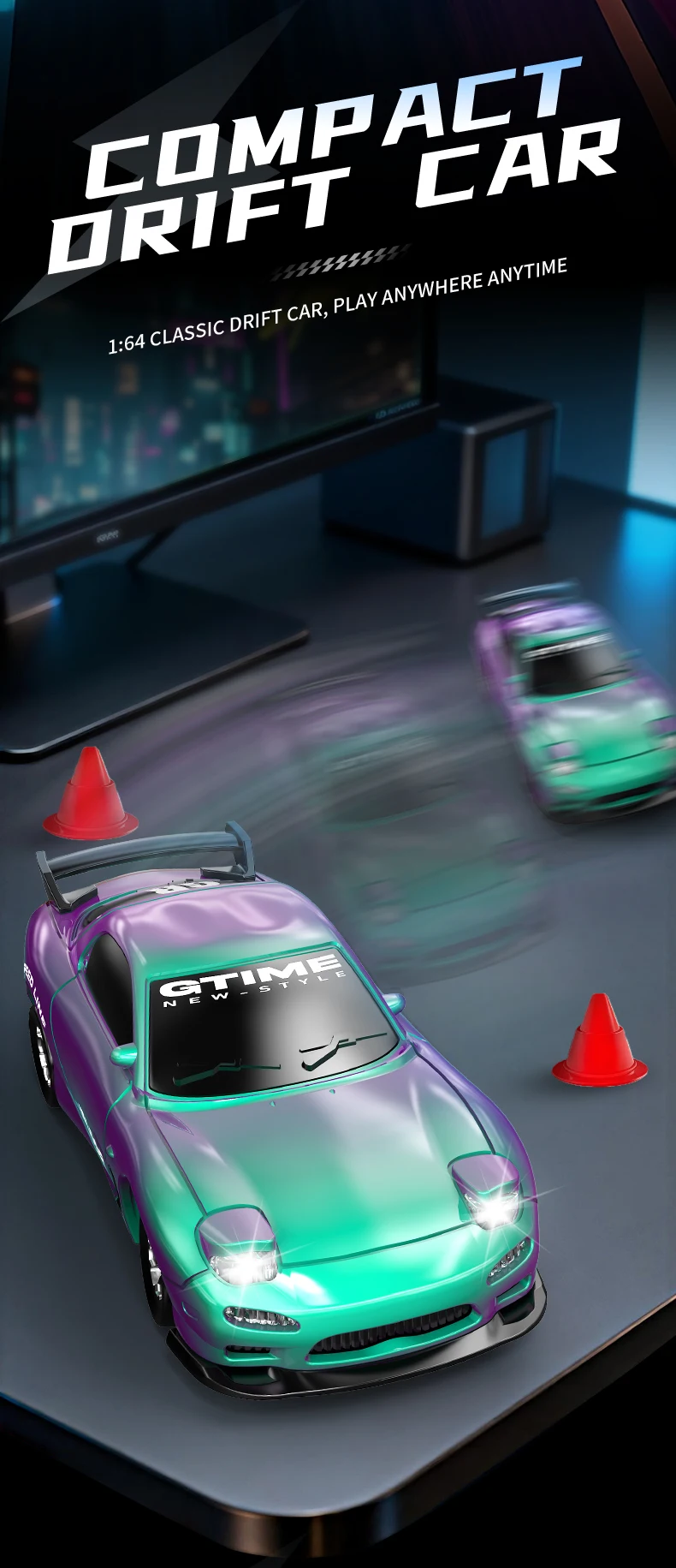New 1:64 Mini Desktop Simulation Rc High-Speed Remote Control Car 2.4g Pocket Four-Wheel Drive Drift Remote Control Toy Boy Gift