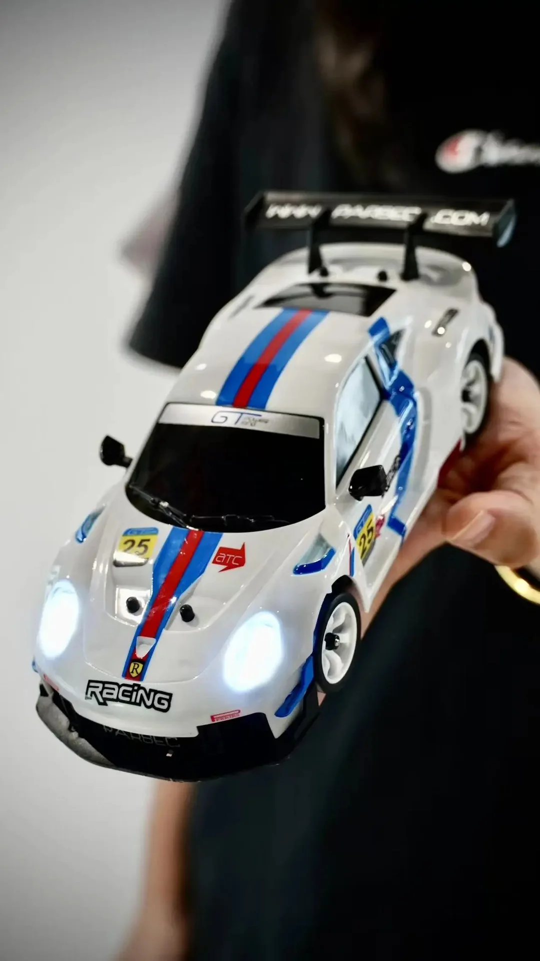 1. Full-scale simulation structural design, realistic car control feel (remote control allows high-speed driving, instant acceleration, deceleration, braking, reversing, turning, lighting). Independent suspension on front and rear wheels ensures smooth cornering and stable car posture.